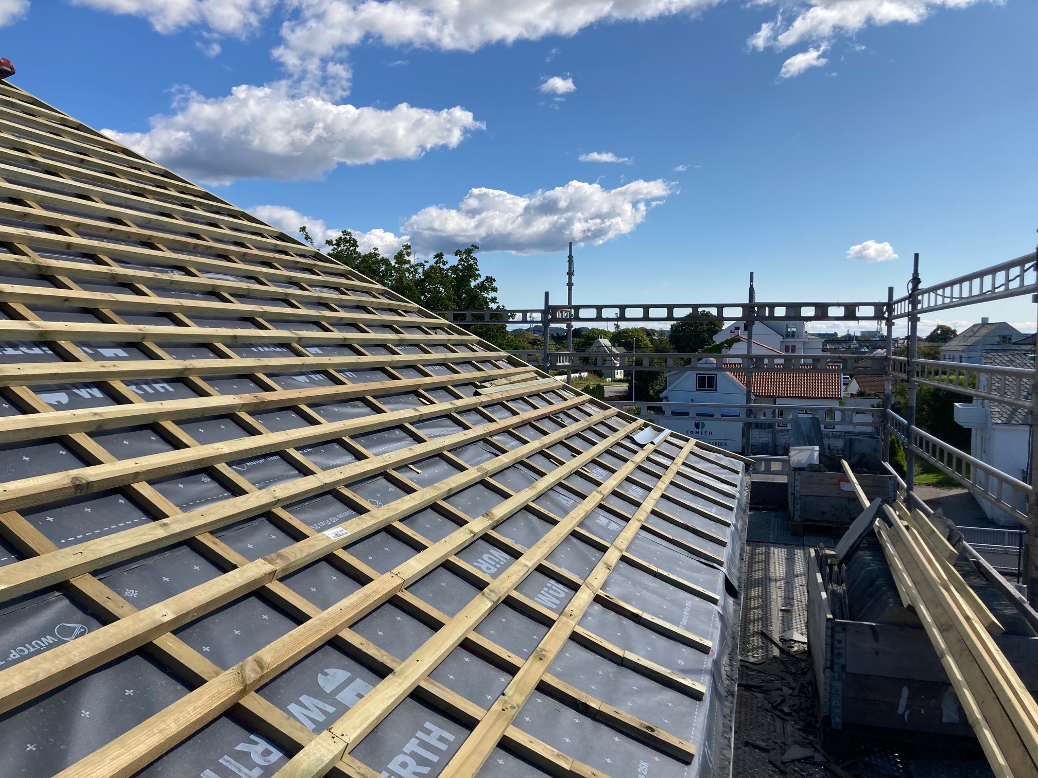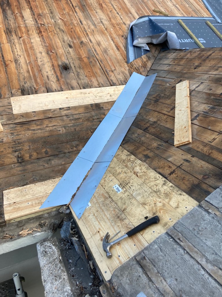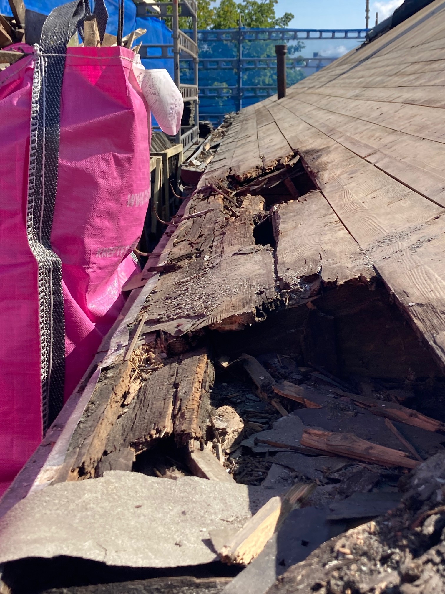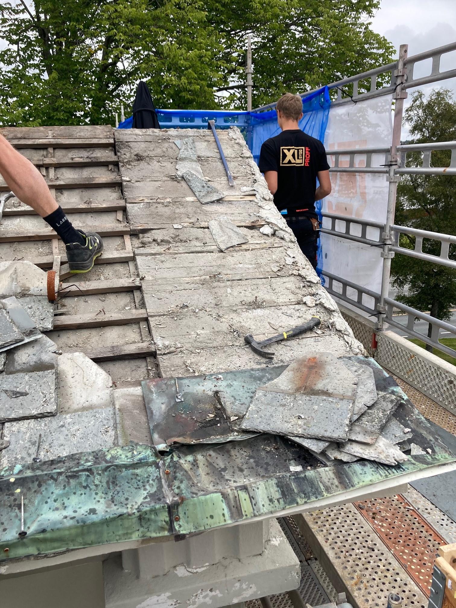 Her er noen flere bilder. Det viste seg å være råte enkelte steder, spesielt i hjørnene mot nord. Alle takvinduene blir også skiftet. Jahn T.