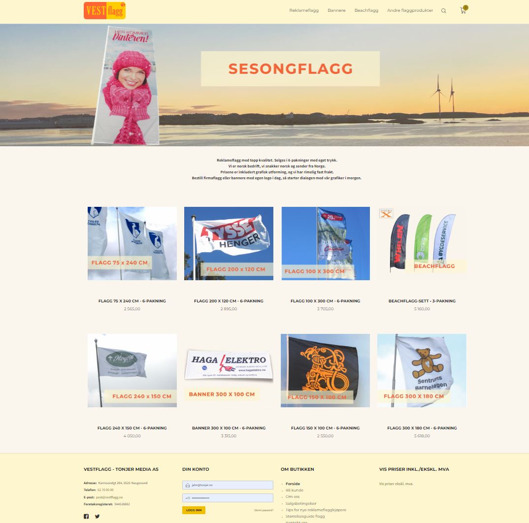 Godt nytt år! Vi er i disse dager i ferd med å prøvekjøre vår nye nettbutikk vestflagg.no. Vi har i Tonjer Media i over tre tiår solgt reklameflagg og bannerprodukter til bedrifter, foreninger og offentlig virksomheter. I de senere år har vi sett behovet for separere de ulike satsningsområdene, dels for å fremstå mer dedikerte og fokuserte i søkeoptimaliseringssammenheng, men også for -om mulig- skape bedre oversikt og lettere navigering for mulige kunder. Og ettersom våre nettsider på http://www.tonjer.no begynner å bli modne for en revitalisering, valgte jeg i første omgang å fornye presentasjonen av flagg-konseptet vårt.